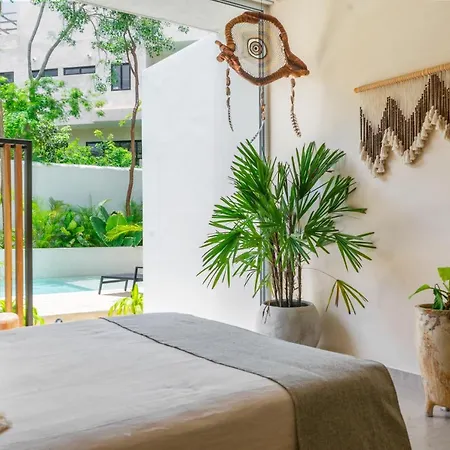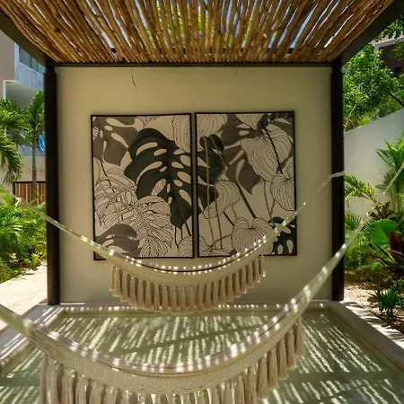 The 60 m^2 Studio Wterrace, Hammock, And Pool Access Apartment is located 2.5 km from Caleta Tankha Playa and 25 minutes' walk from Hernandez Gallery Tulum. The apartment has parking nearby.